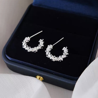 【陽光のさざ波】クリスタルフラワーフープピアス/アレルギー対応/シルバー925/ポストピアス