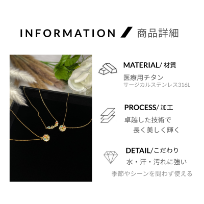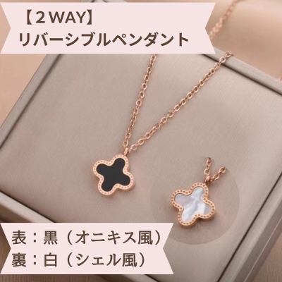 【宵と朝のきらめき】リバーシブル/クローバー/ネックレス/ピンクゴールド/アレルギー対応/チタン/黒白2WAYデザイン