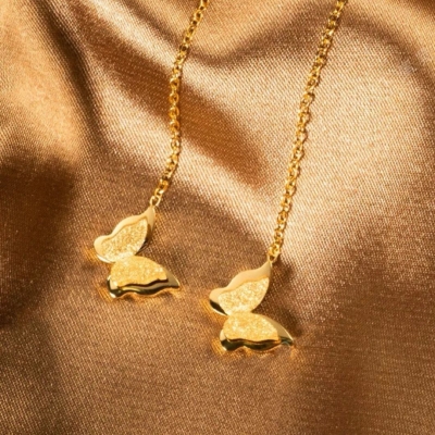 【金蝶のさざめき】ロングタッセルピアス/アレルギー対応/チタン使用