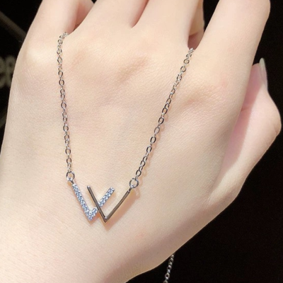 【Vが描く光の約束】ダブルVラインネックレス/アレルギー対応/チタンコーティング