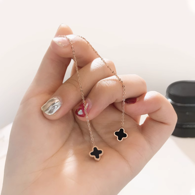 【黒雲に揺れるクローバー】ロングタッセルピアス/クローバーモチーフ/アレルギー対応/チタン使用