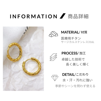 【陽光のさざ波】ツイストフープピアス/アレルギー対応/チタン使用