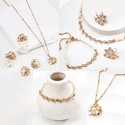 【海と光の約束リング】ホワイトシェル×ジルコニアリング/アレルギー対応/チタンコーティング