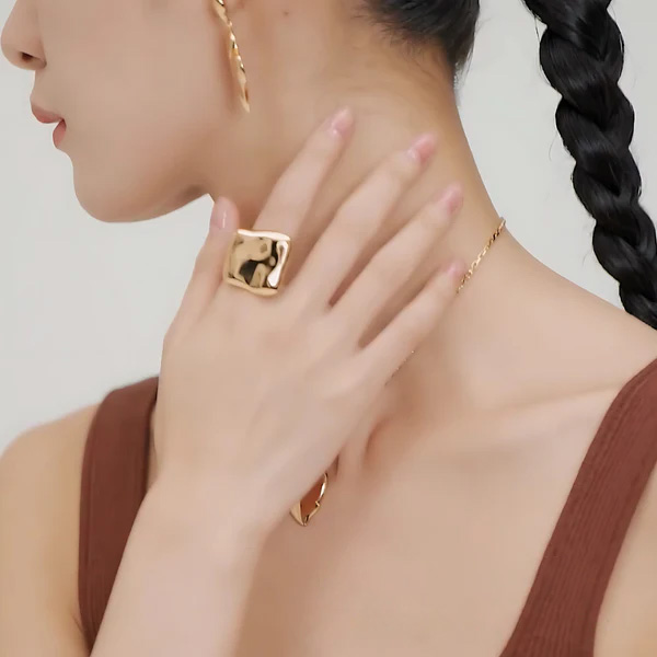 【星影のねじれリング】ツイストデザイン/アレルギー対応/チタンコーティング