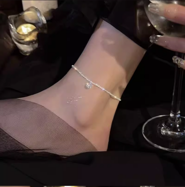 【星雫のアンクレット】ジルコニア×一粒チャーム/アレルギー対応/シルバー925